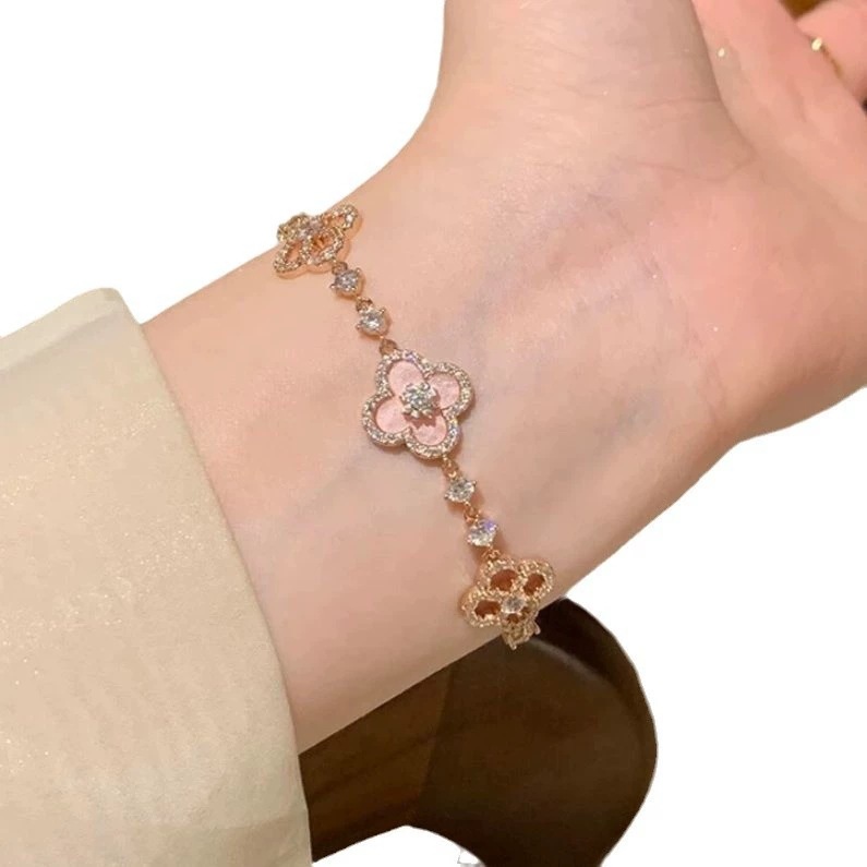 Four-leaf Clover Design: Features an elegant four-leaf clover with pink fritillaria accents, symbolizing luck and sophistication.