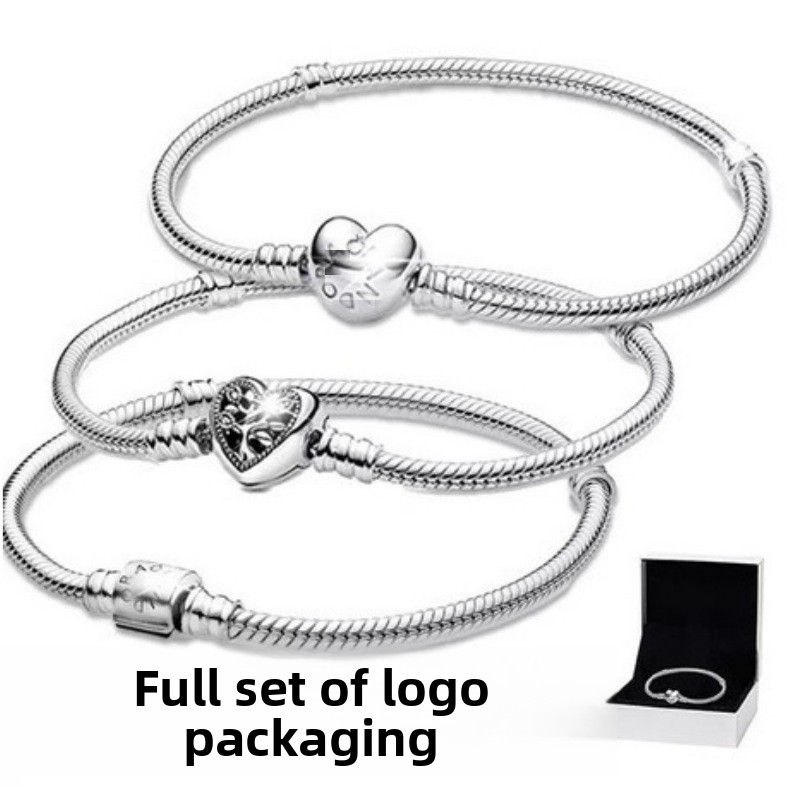 Elegant Design: Features snake bone chain with various charm options like heart-shaped, leaf-shaped, and ball-shaped buckles.