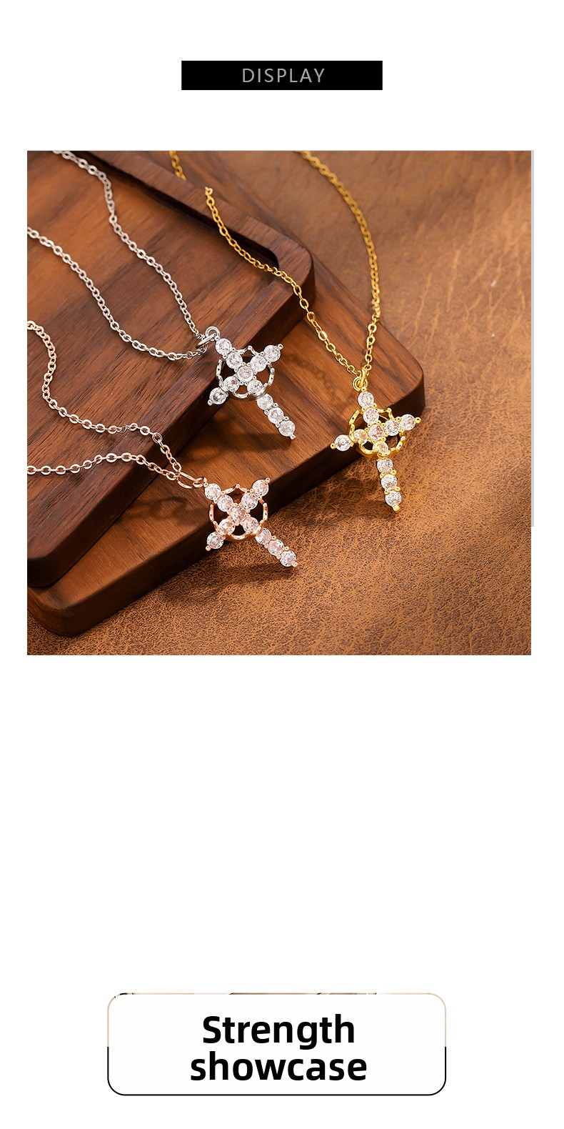 Colors: Golden cross (K1020-A), Silver cross (K1020-B), Rose gold cross (K1020-C)